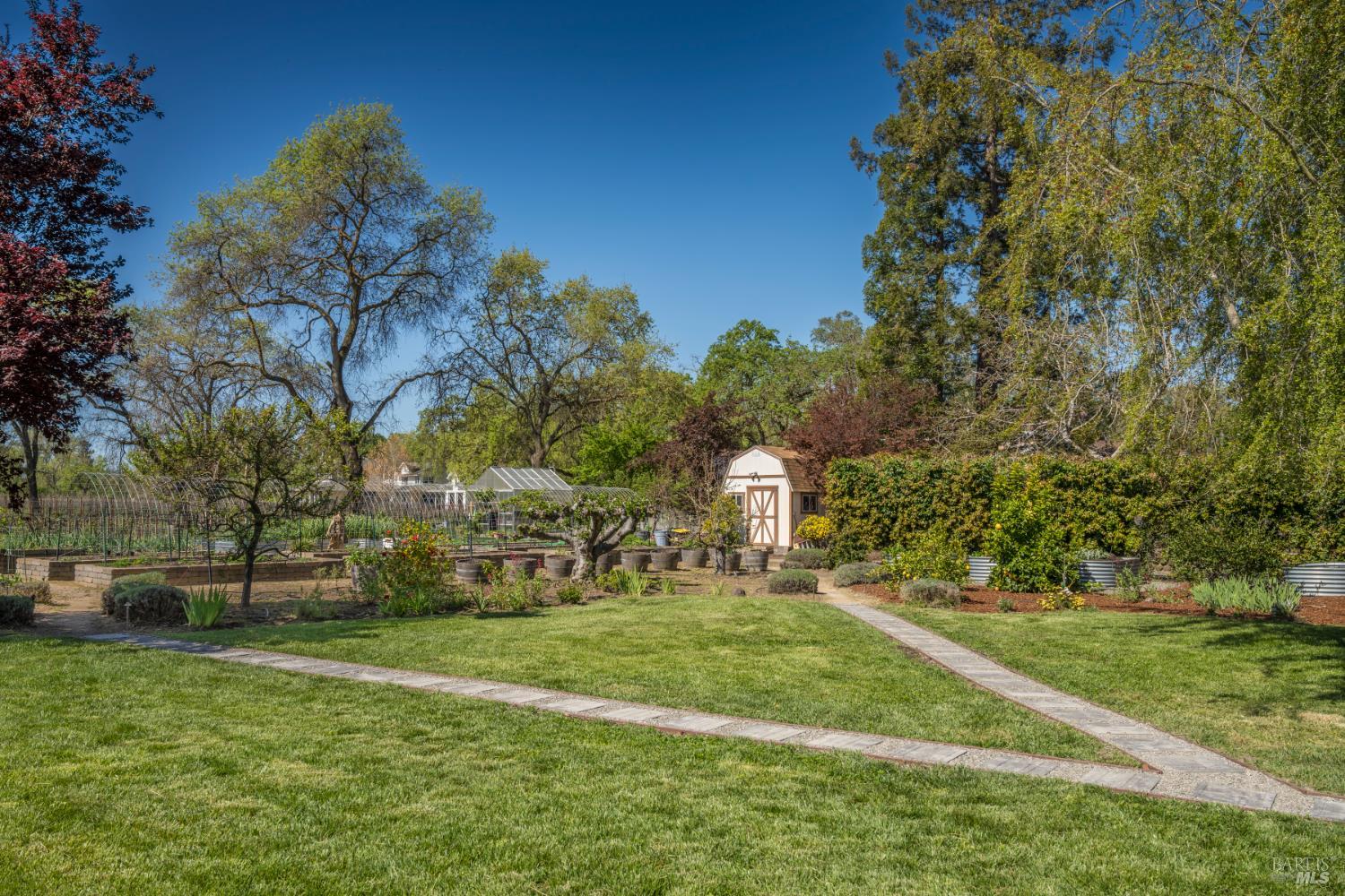This exceptional Napa Valley estate is priced to sell, delivering outstanding value in today's market as a fully renovated, self-sufficient luxury retreat with rare features and an unbeatable location. The main residence boasts 6 bedrooms and 5 updated bathrooms, including one primary suite on the main floor for convenience. Enjoy a formal dining room perfect for entertaining, a cozy breakfast nook, a gourmet kitchen with high-end appliances and sleek finishes, and an elegant library with a custom wine room featuring specialized cooling. Recent upgrades include a state-of-the-art gym, sophisticated media/party room, and dedicated laundry. A separate 1-bedroom, 1-bath guest apartment offers its own kitchen, living area, laundry, and private entrance, ideal for visitors, staff, or added income. An owned solar system with backup batteries generates over 24 megawatts annually for true energy independence. A workshop behind the garage adds utility. The vast garden supports a farm-to-table lifestyle: fenced chicken area, raised vegetable beds, pathways, greenhouse, outdoor lighting, shed, mature fruit trees, and full irrigation. The heated pool anchors the entertainment space. Savor privacy and serenity with stunning vineyard views from neighboring properties, yet downtown Napa is minutes away and Silverado Country Club is a quick golf cart ride, perfectly blending rural charm with urban access. Don't miss this turnkey, high-performance estate in one of Napa's premier areas!