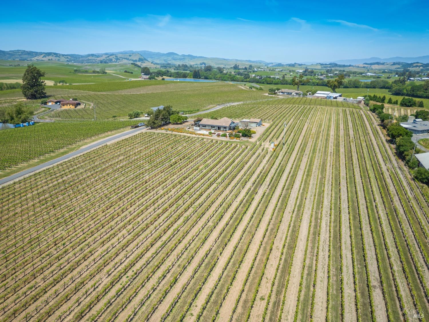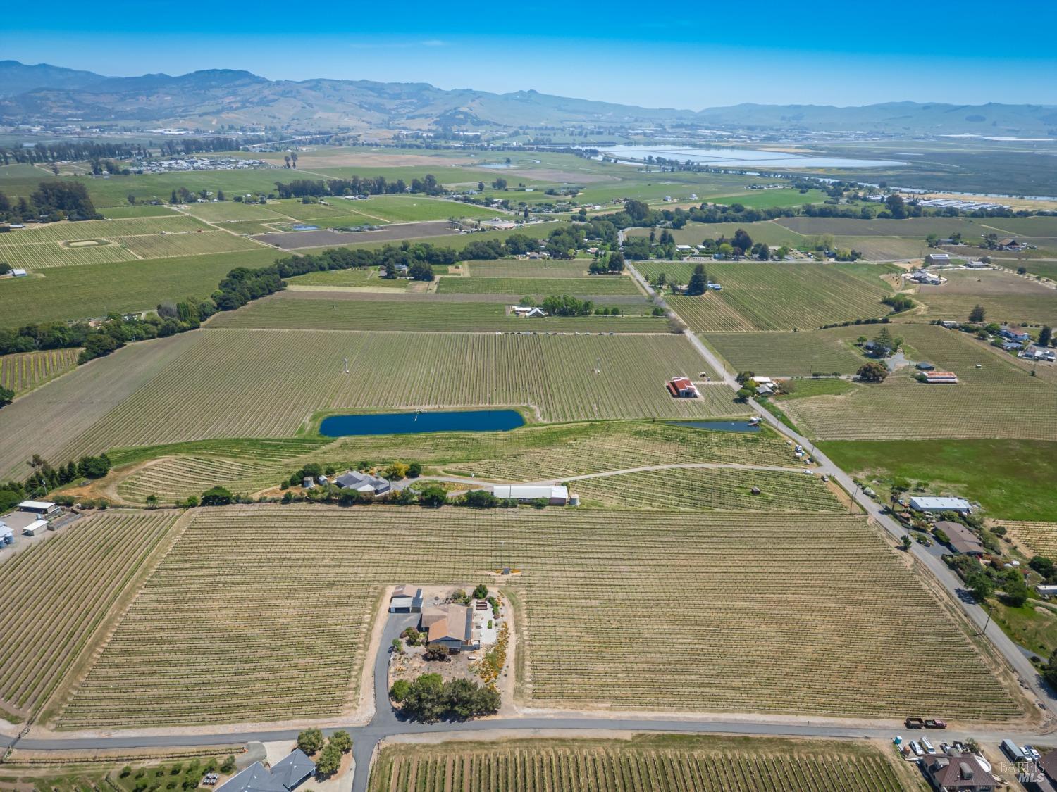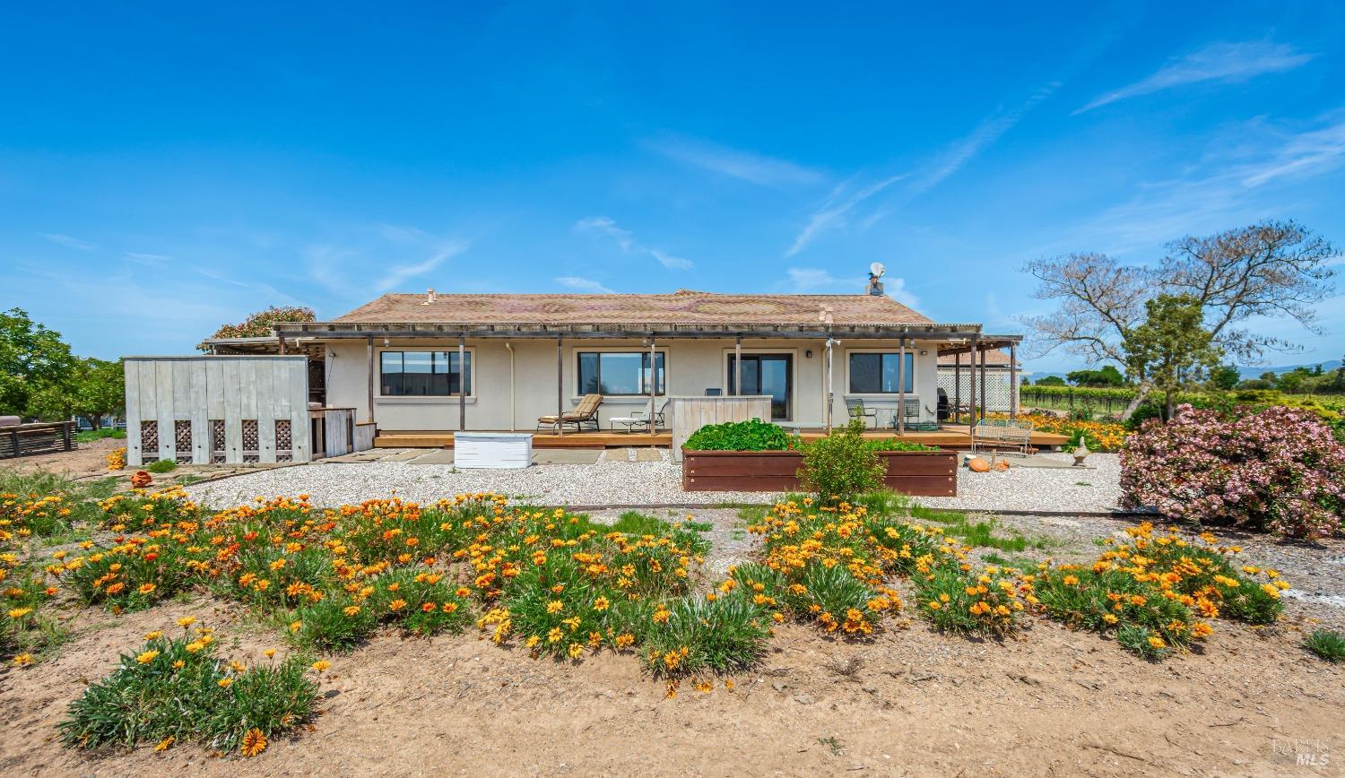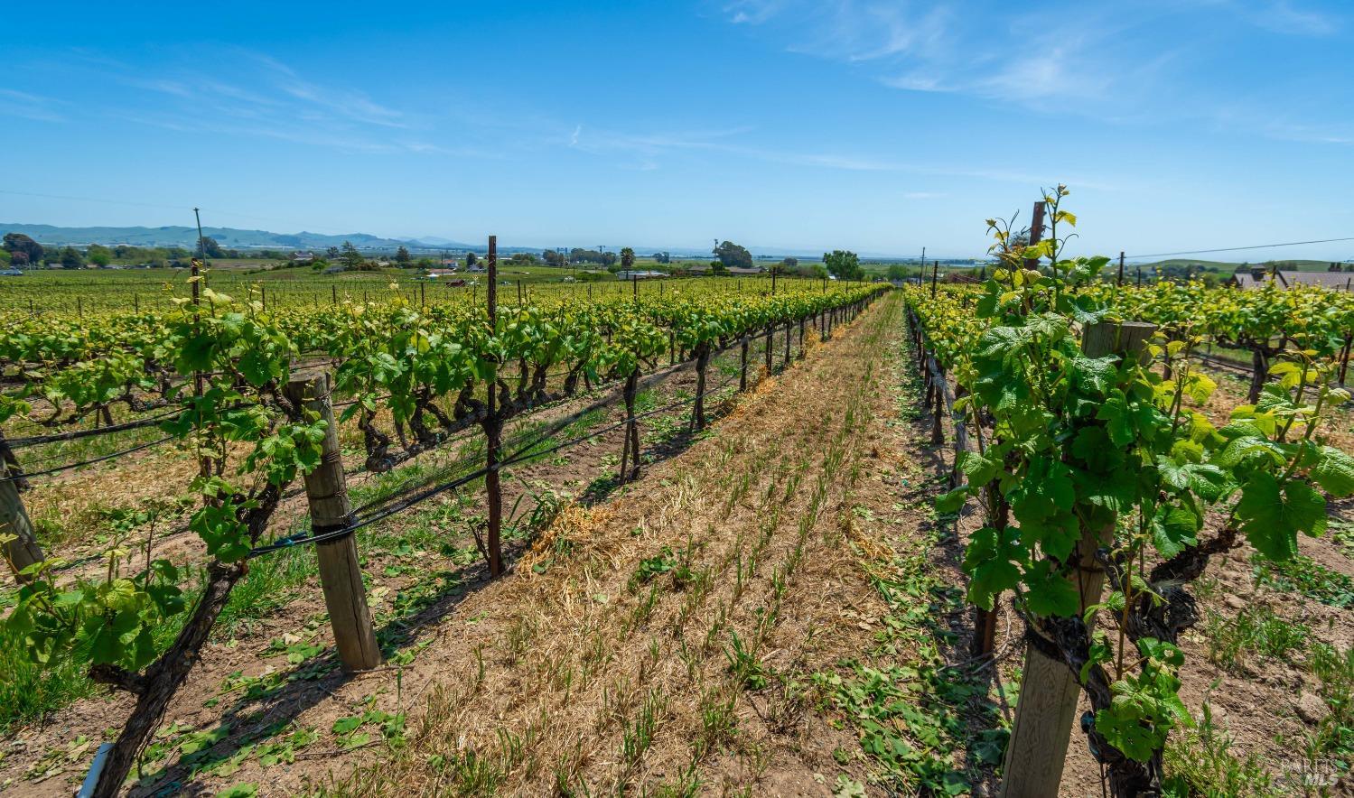 Carneros Vineyard Estate with Iconic Views 3 Bed | 2 Bath | 2,116 SF | 1 LVL |10 Acres | Carneros AVA A rare 10-acre vineyard estate perched on a private knoll in Napa's Carneros region, offering panoramic 360 viewsfrom vineyard-covered valleys to Mt. Tamalpais, Mt. Diablo, & the Bay. 8.5 acres are planted in premium Pinot Noir, currently used in a renowned sparkling wine program. The single-level 3-bedroom home is filled with natural light & framed by windows that capture breathtaking scenery from every room. Enjoy your morning coffee or evening wine from the expansive south-facing deck as hot air balloons drift by & the light dances over the vines. This peaceful & private setting is just minutes from top wineries, the Napa River, fine dining, & Sonoma access. A rare opportunity to combine vineyard investment with unmatched serenity and iconic wine country living. Detached garage, gardens, SF is just under 50 miles away