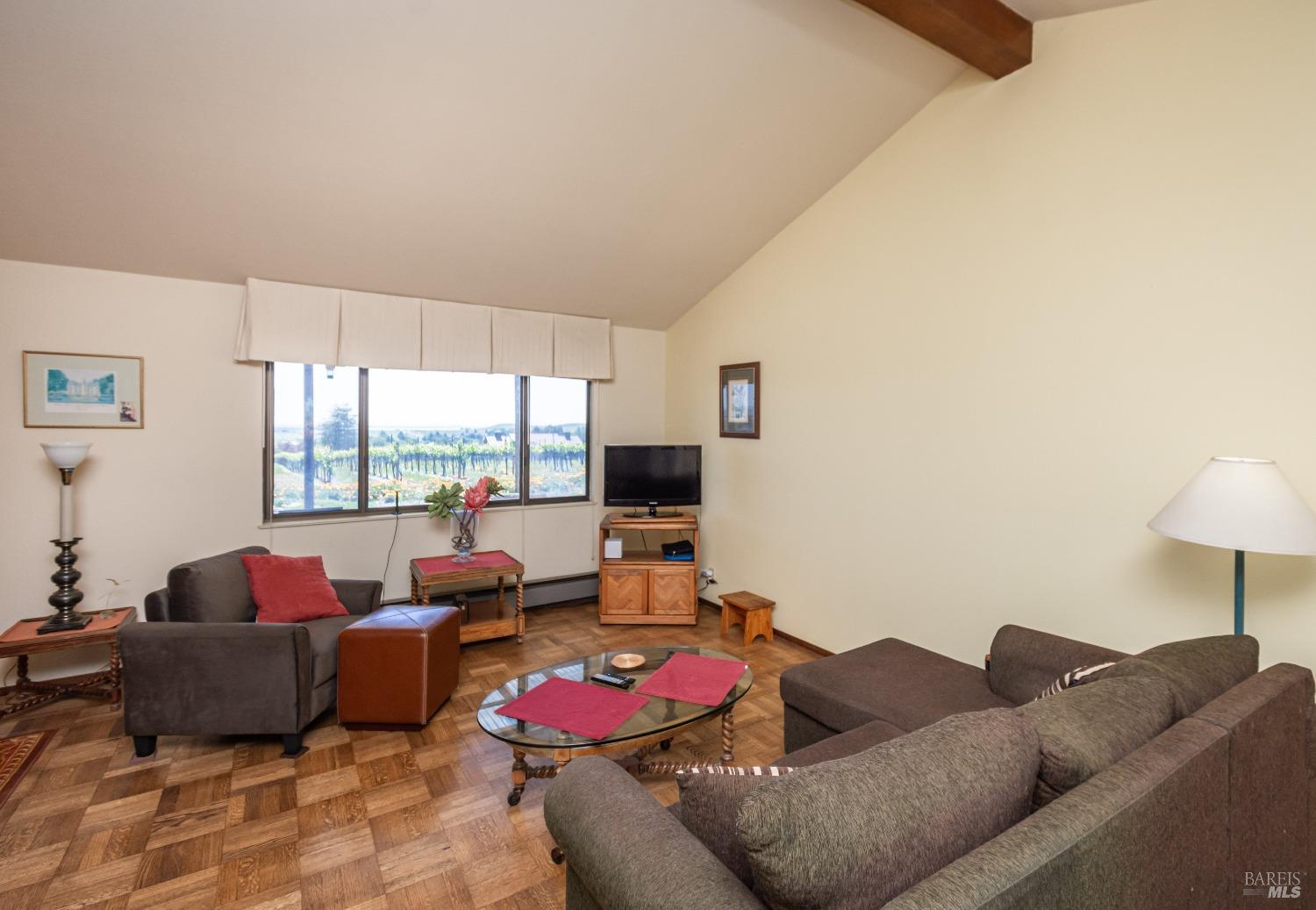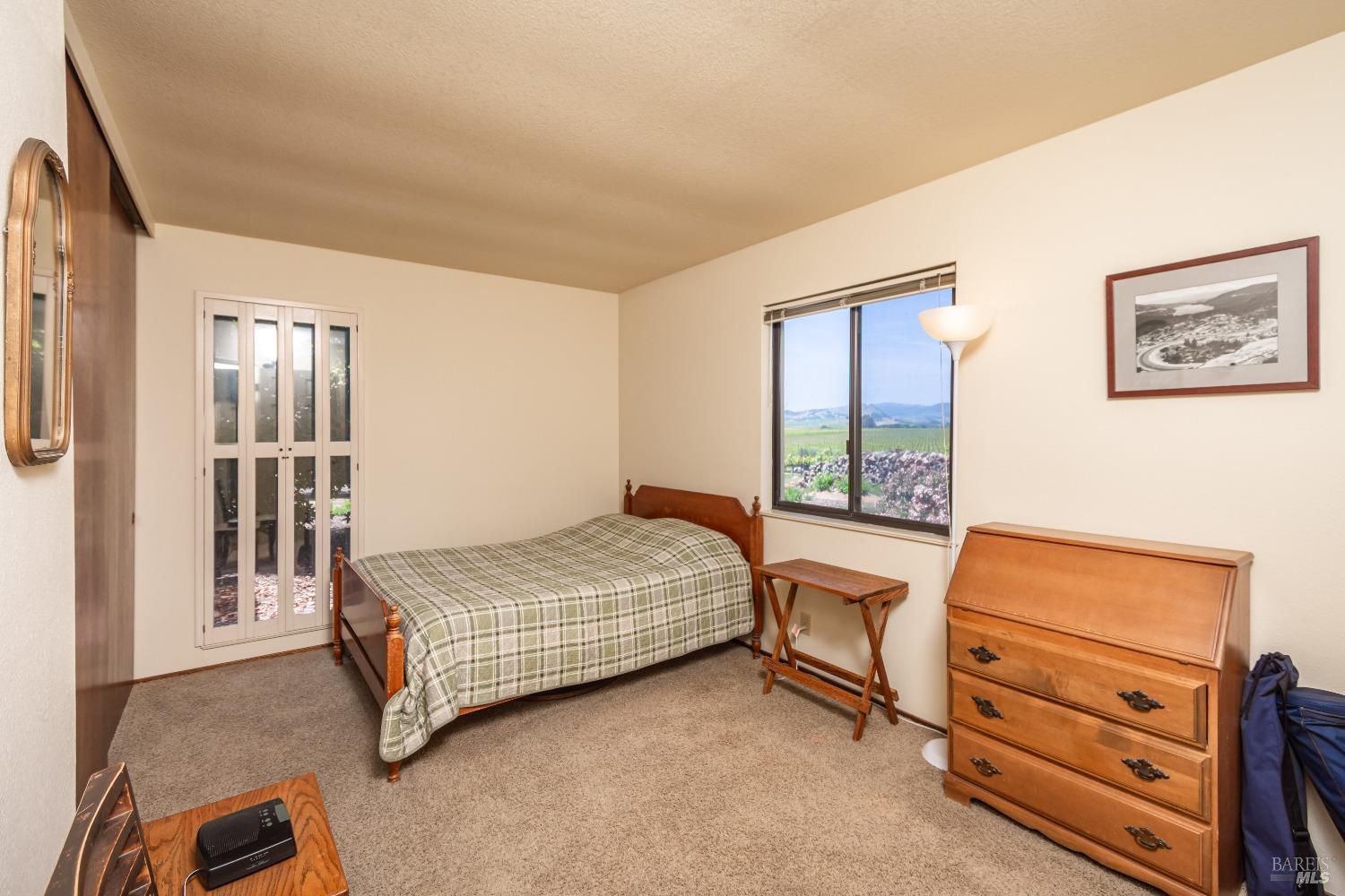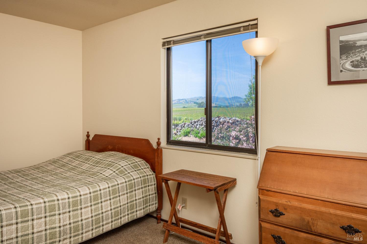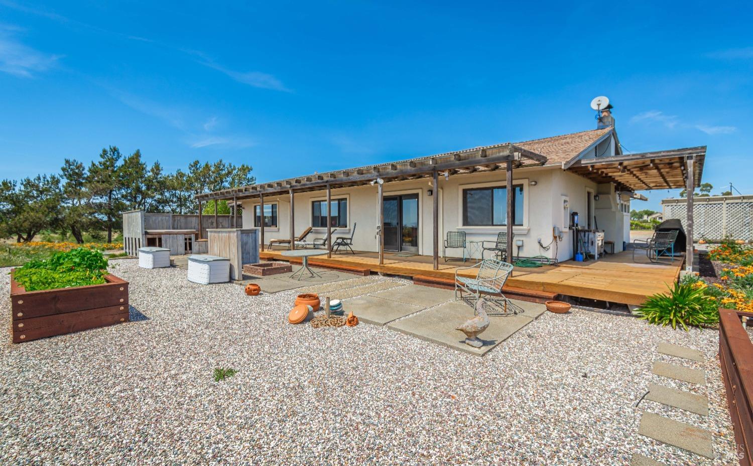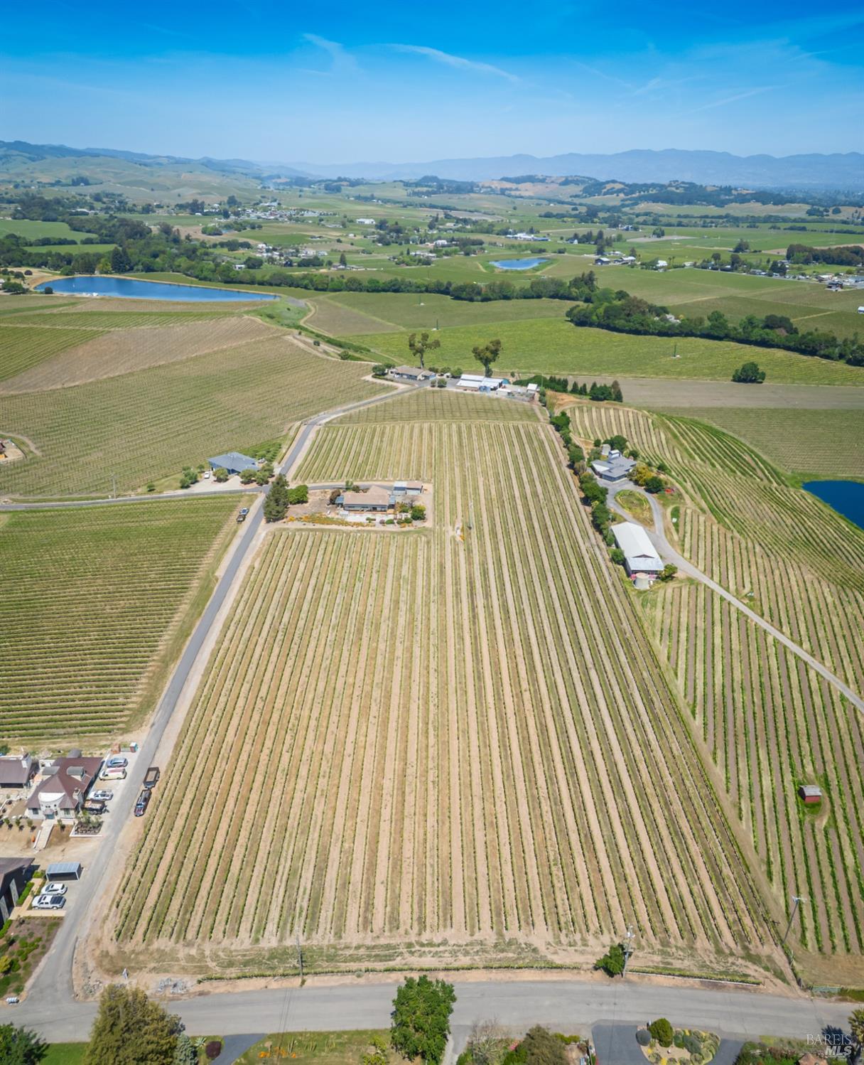 Carneros Vineyard Estate with Iconic Views 3 Bed | 2 Bath | 2,116 SF | 1 LVL |10 Acres | Carneros AVA A rare 10-acre vineyard estate perched on a private knoll in Napa's Carneros region, offering panoramic 360 viewsfrom vineyard-covered valleys to Mt. Tamalpais, Mt. Diablo, & the Bay. 8.5 acres are planted in premium Pinot Noir, currently used in a renowned sparkling wine program. The single-level 3-bedroom home is filled with natural light & framed by windows that capture breathtaking scenery from every room. Enjoy your morning coffee or evening wine from the expansive south-facing deck as hot air balloons drift by & the light dances over the vines. This peaceful & private setting is just minutes from top wineries, the Napa River, fine dining, & Sonoma access. A rare opportunity to combine vineyard investment with unmatched serenity and iconic wine country living. Detached garage, gardens, SF is just under 50 miles away
