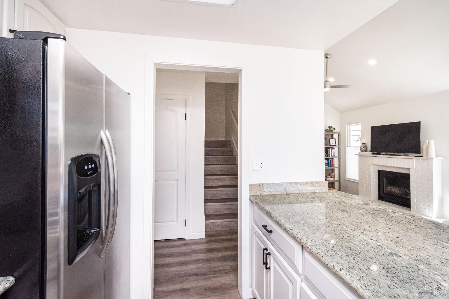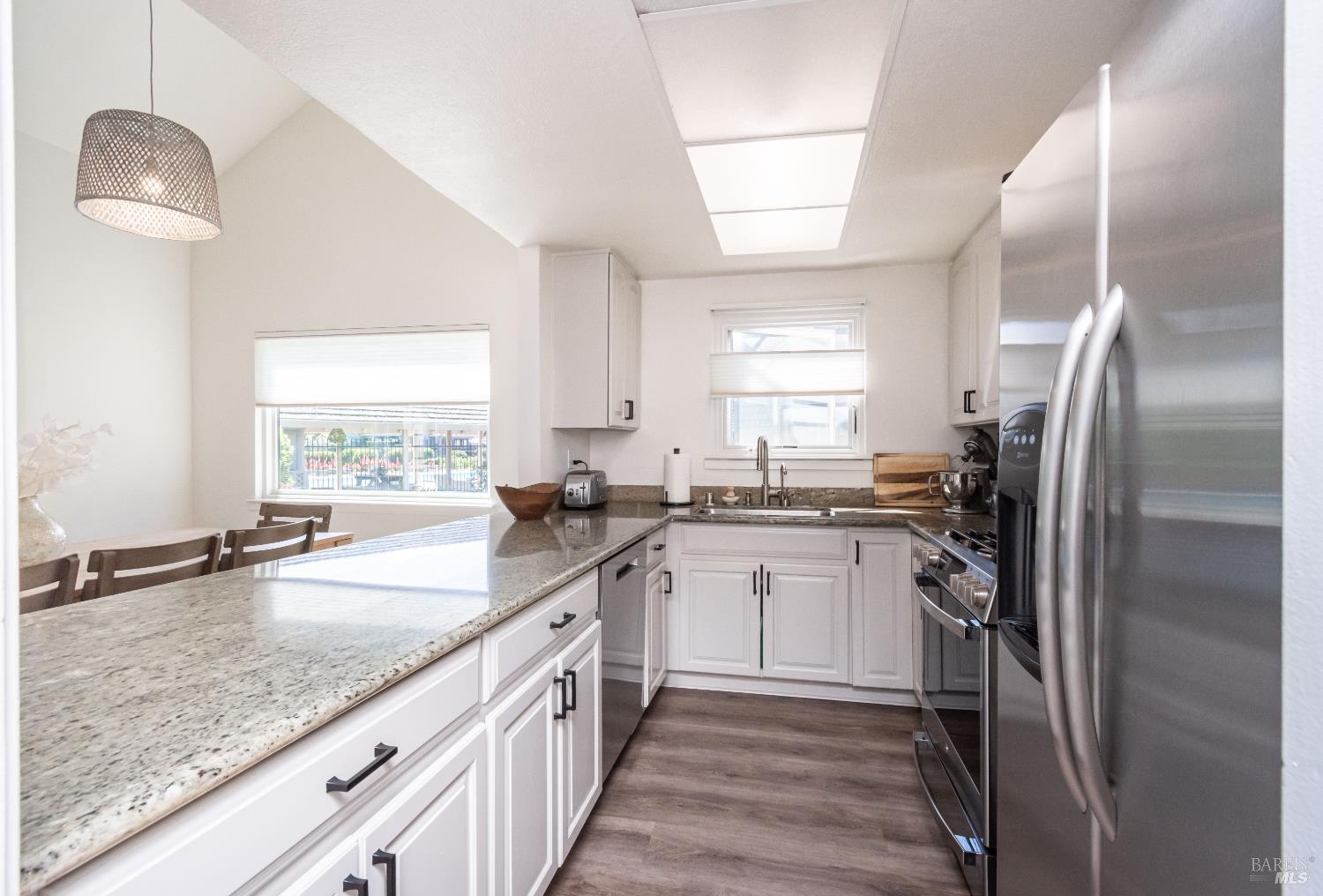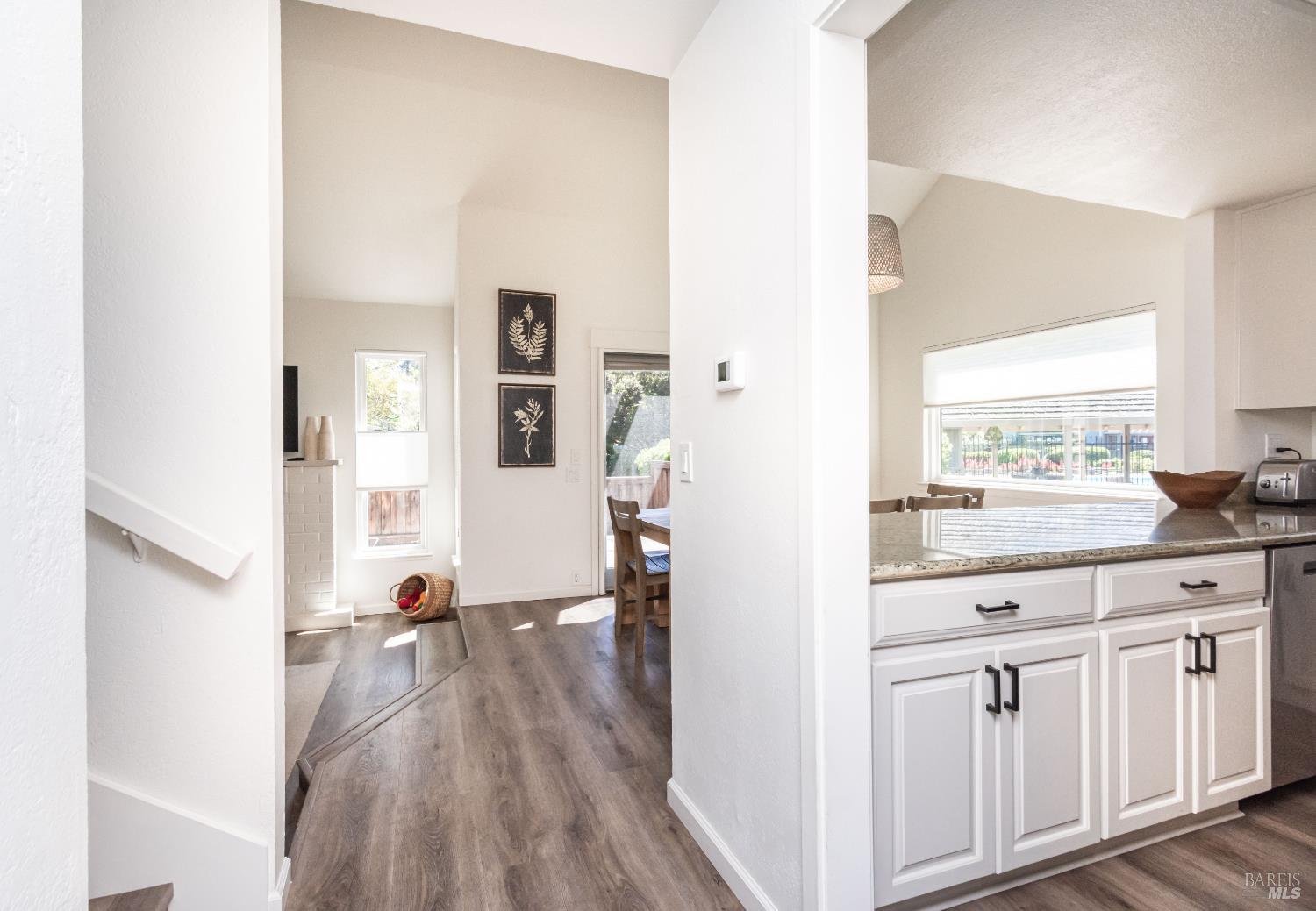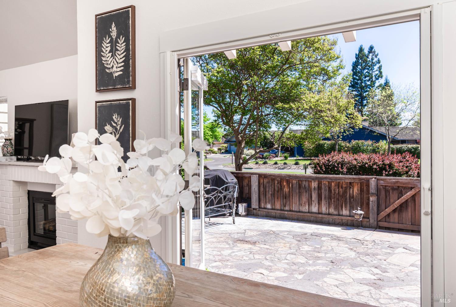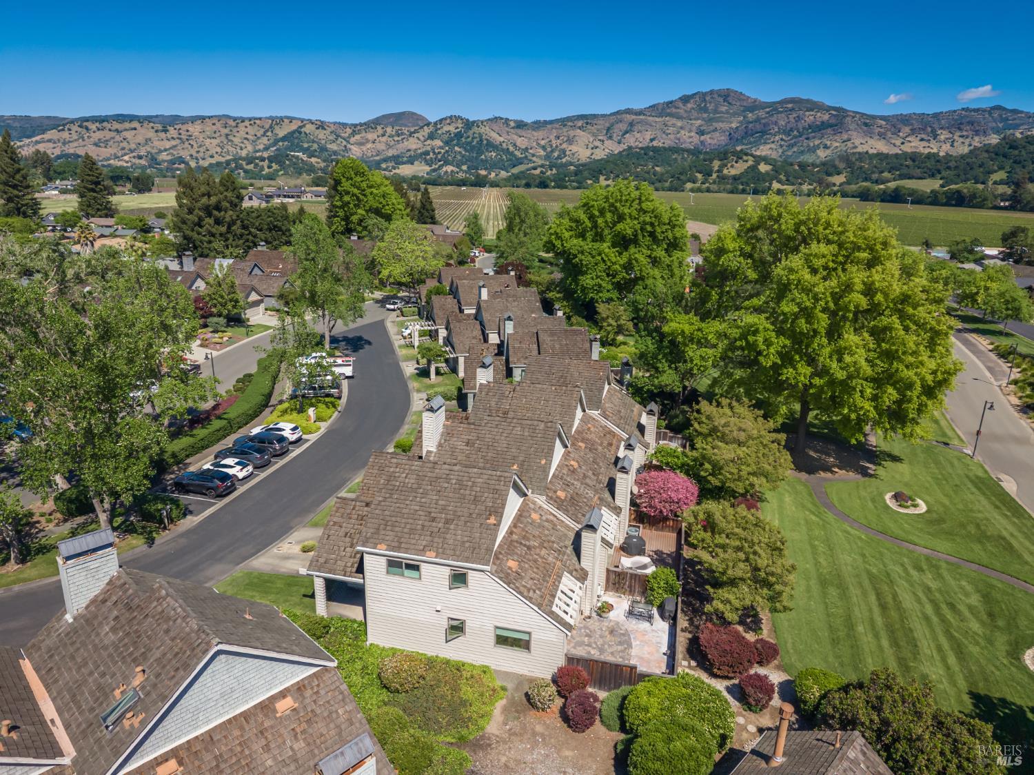 Tucked along the quiet eastern edge of Yountville where vineyards give way to open space, this refined end-unit townhome offers a rare composition of privacy, natural light, & effortless walkability. Set back from through traffic, the setting feels peaceful & removed, yet remains moments from the restaurants, tasting rooms, & everyday rhythm that define Yountville. A south-facing rear terrace opens to expansive greenbelt & mountain views, capturing both the softness of morning light & the warmth of Napa evenings - an inviting setting for coffee, conversation, & unhurried outdoor dining. As an end unit, the home is filled with natural light, while surrounding pathways, pool, spa, & the Vine Trail extend the living experience into the landscape. Inside, vaulted ceilings & a fireplace anchor the main living space, creating both volume & intimacy. A formal dining area offers flexibility for gathering or quiet evenings at home, while the kitchen appointed with stainless steel appliances, granite counters, & a refined backsplash delivers a clean, modern aesthetic with everyday functionality. The interior spaces transition seamlessly to the outdoor setting, where a pastoral backdrop & open mountain views create a sense of calm and connection to the land. Recent updates, including dual-pane windows, new flooring, refreshed paint, updated lighting, an upgraded wood door, the covered front porch, indoor laundry & mud room, spacious bedrooms with views from each window, contribute to a move-in-ready experience. A one-car garage provides added ease 7 storage. An exceptional offering for those seeking a low-maintenance primary residence, a refined weekend retreat, or a foothold in one of Napa Valley's most desirable walkable communities.