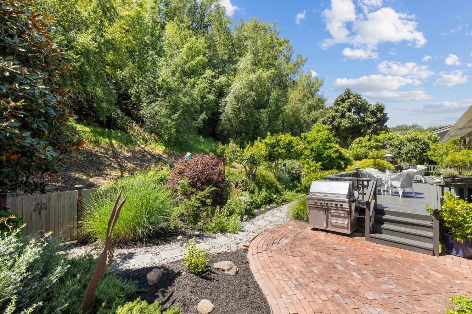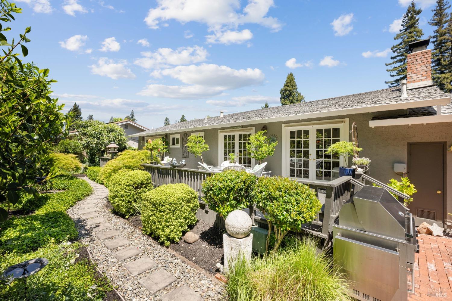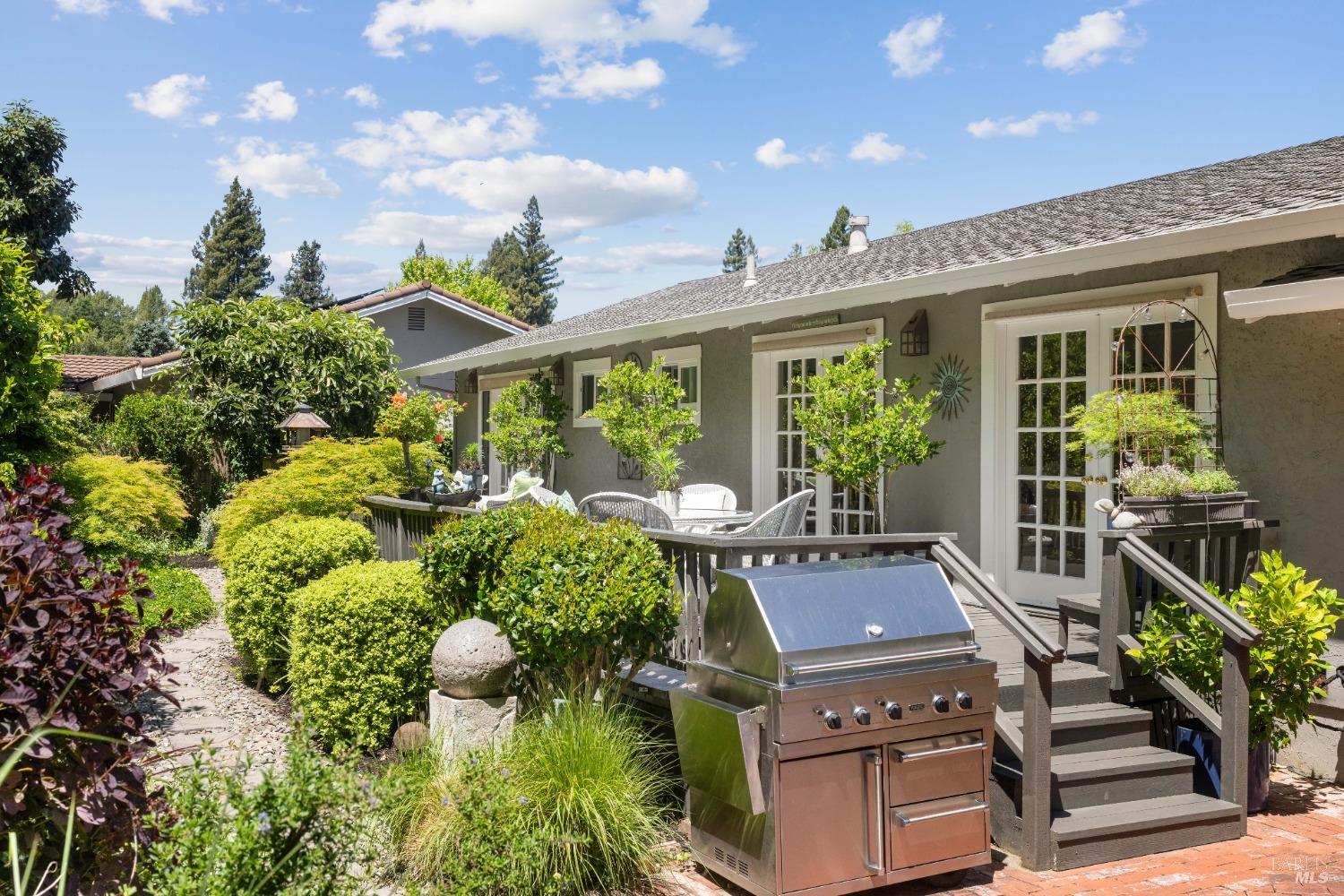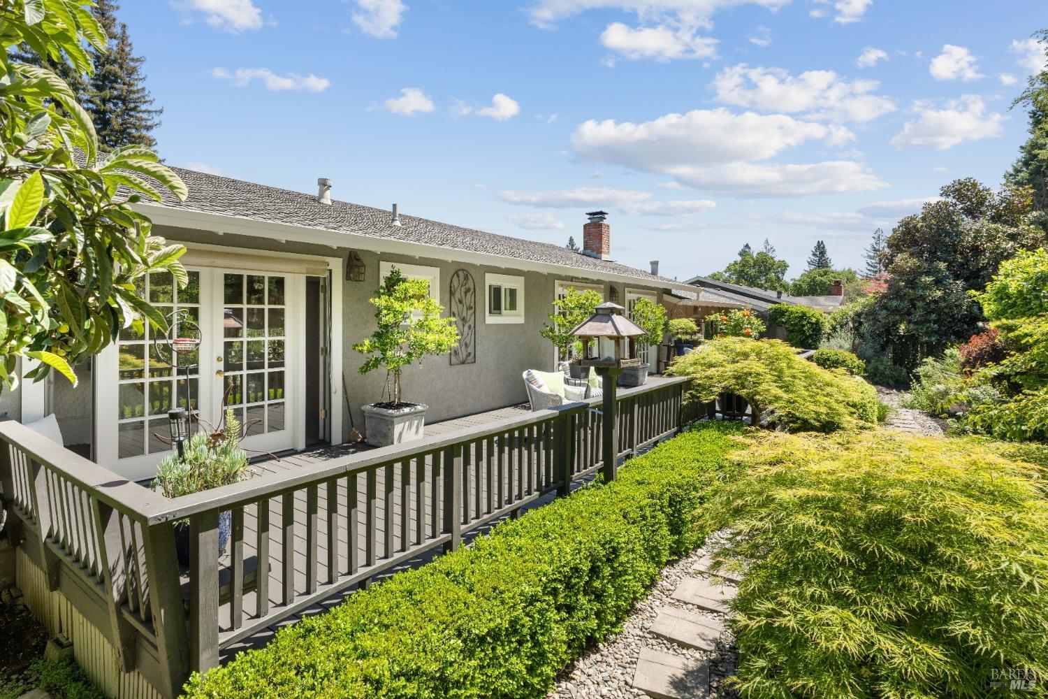 Paradise found & location matters, set on spectacular highly desired street set up against this bucolic forest in Browns Valley, this single level, 1,441 sf,, 3/2, renovated home, offers large living room with open beam ceilings, gas fireplace, formal dining room, wood floors, offering two french doors that open to the private deck, gardens, BBQ area & the lush rear yard, chefs delight kitchen renovation, offering the buffet, a peninsula, built in sub-zero refrigerator, Viking gas range, stainless steel appliances, upgraded cabinets & artistic tiles counters, En suite primary that offers rear yard deck, renovated en suite tiled shower & bathroom, fresh paint, wood floors, dual pane windows, updated roof, 2 car garage, shows like a dream. Come & feel, experience the tranquility of this area. Close to restaurants, shopping, dry cleaners, coffee shop, parks & more.