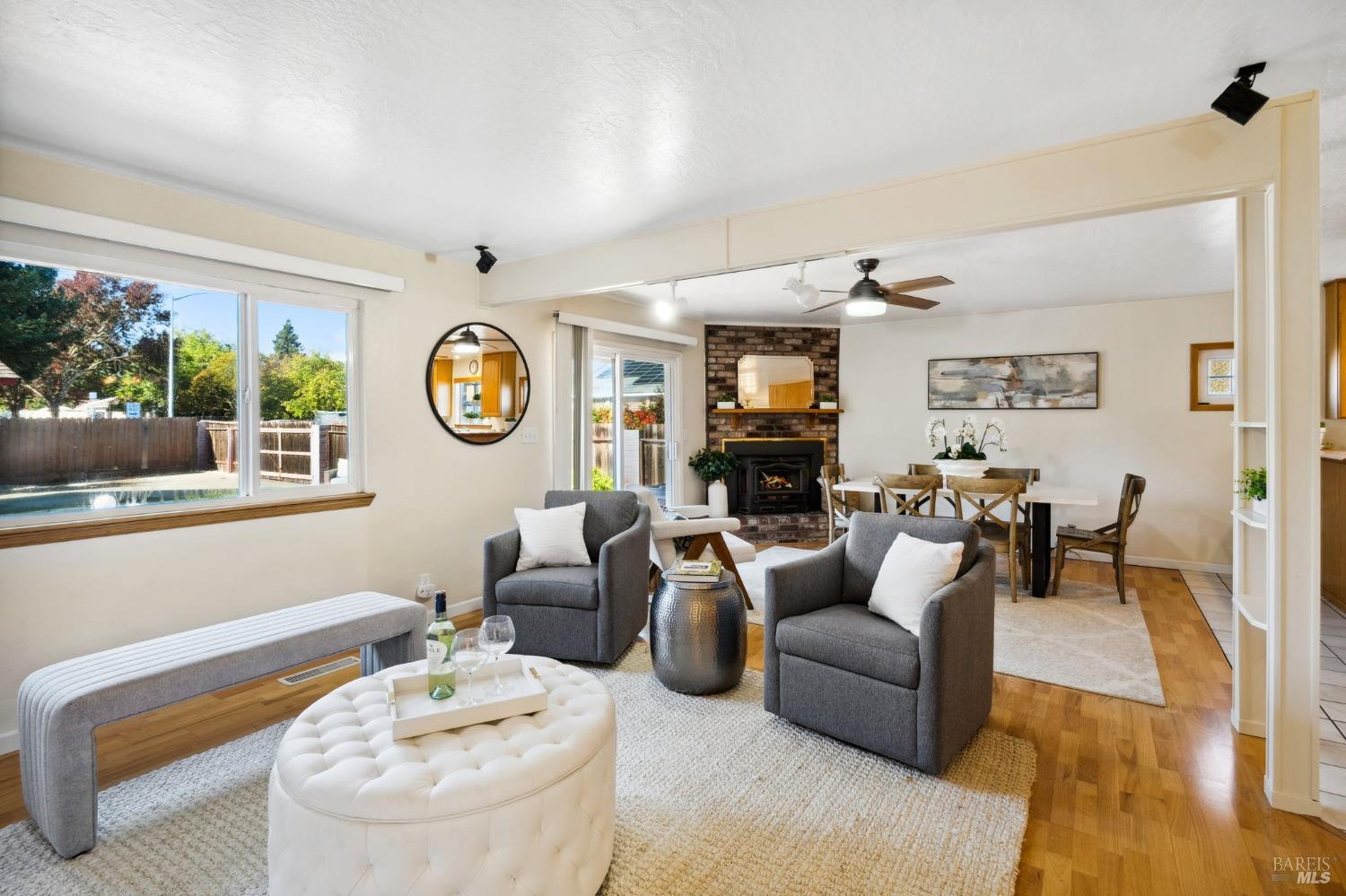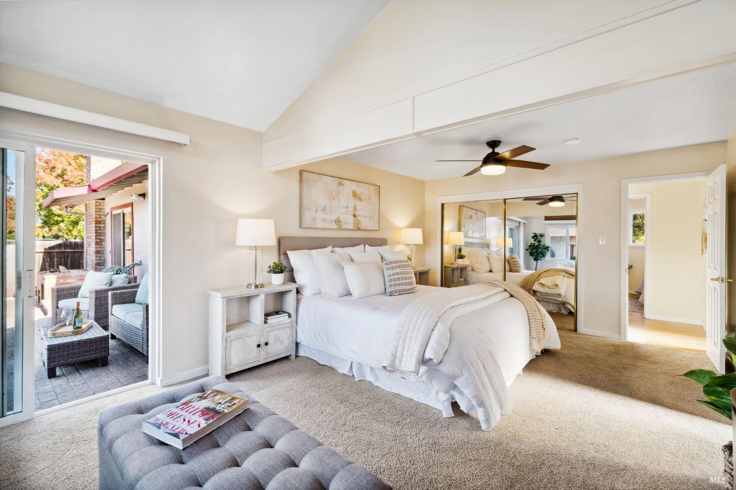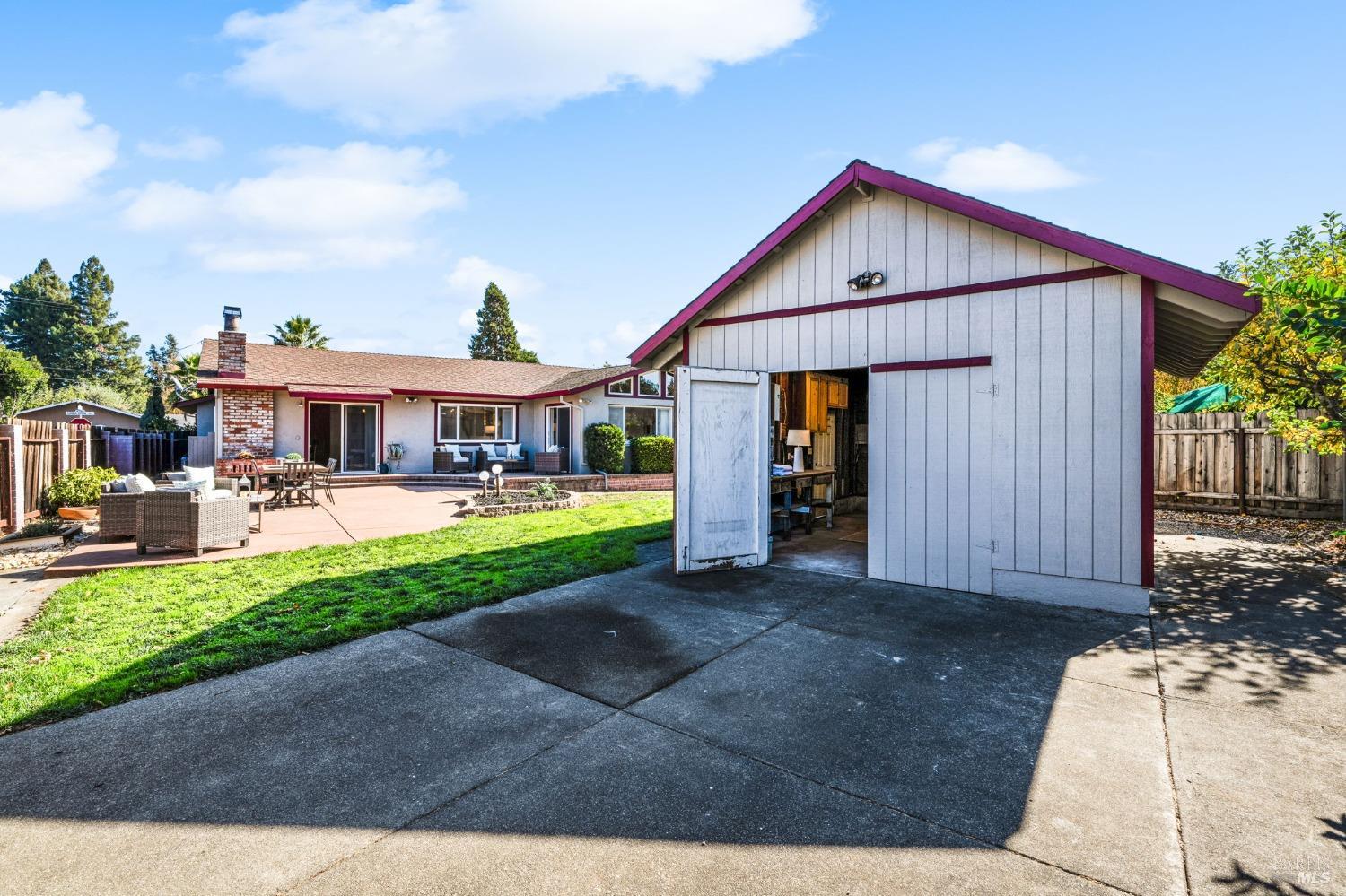 Single level home sited on a fully fenced & gated corner lot featuring 320 sq ft +/- detached building with 2nd driveway perfect for 2nd garage, studio or ADU. Located on desirable West Side of Napa walking distance to Starbucks & minutes to Freeway access with gated front courtyard providing privacy & curb appeal. Great room with exposed wood beam ceilings, hardwood floors with glass doors that open from great room to expansive outdoor entertaining area. Spacious approx 369 sq ft ensuite with vaulted exposed beam ceilings, transom window, seating area & glass doors to outdoor seating area. New AC, Furnace, hot water heater in June 2024.