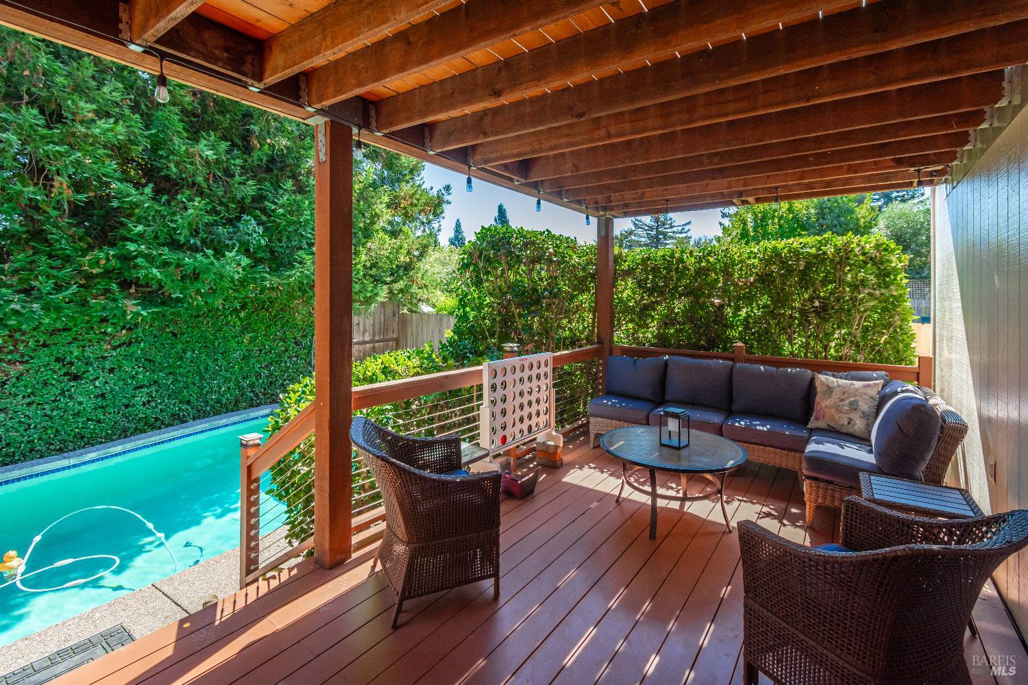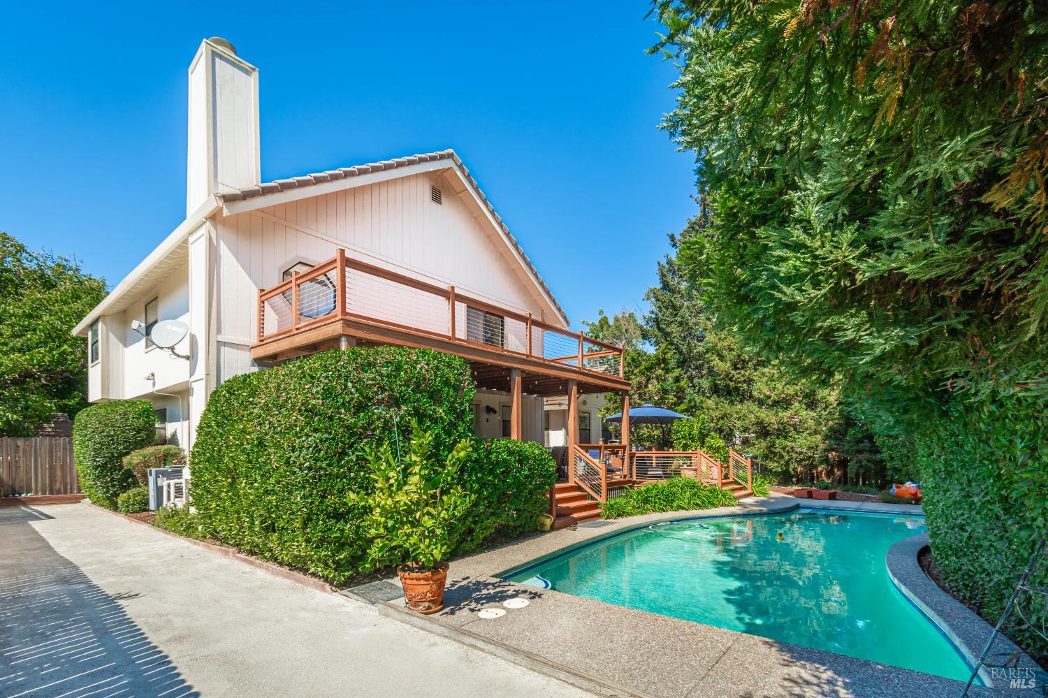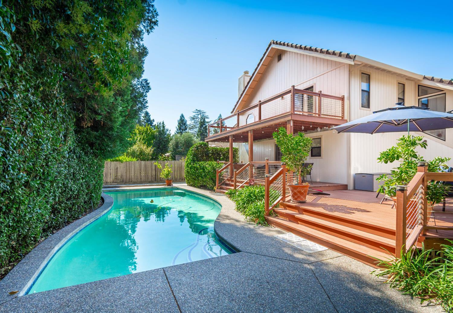 Your Private Sanctuary in Napa's Bucolic Browns Valley - Nestled in a premier location on Napa's desirable west side, this custom-built, 3/2/1, at 2,678 sqft home offers a rare blend of elegant entertaining & peaceful retreat. A formal entry welcomes you into a warm and receptive floor plan, where wood floors grace much of the living space. The separate living room, with its cozy fireplace and built-in bookshelves, provides a quiet escape. Architecturally placed windows draw your gaze to the stunning backyard, seamlessly connecting the indoors with the out. The large kitchen flows into a comfortable family room with its own fireplace, creating the perfect hub for daily life. Step outside to discover your private oasis, with a lot size of 11,643 sf. The expansive, tree-shaded yard features an in-ground pool, a bocce court, and spacious decks with a built-in BBQ area. The primary suite is a true haven, with a slider to its own deck perfect for greeting the morning sun while overlooking the yard's happenings. Enjoy the best of Napa living, with nearby hiking and cycling trails, convenient shopping at the Browns Valley market, and local favorites like HopCreek restaurant just moments away. This is an exceptional opportunity to embrace a coveted lifestyle.