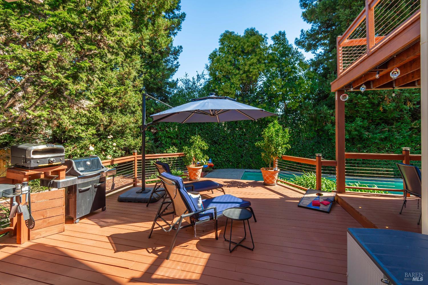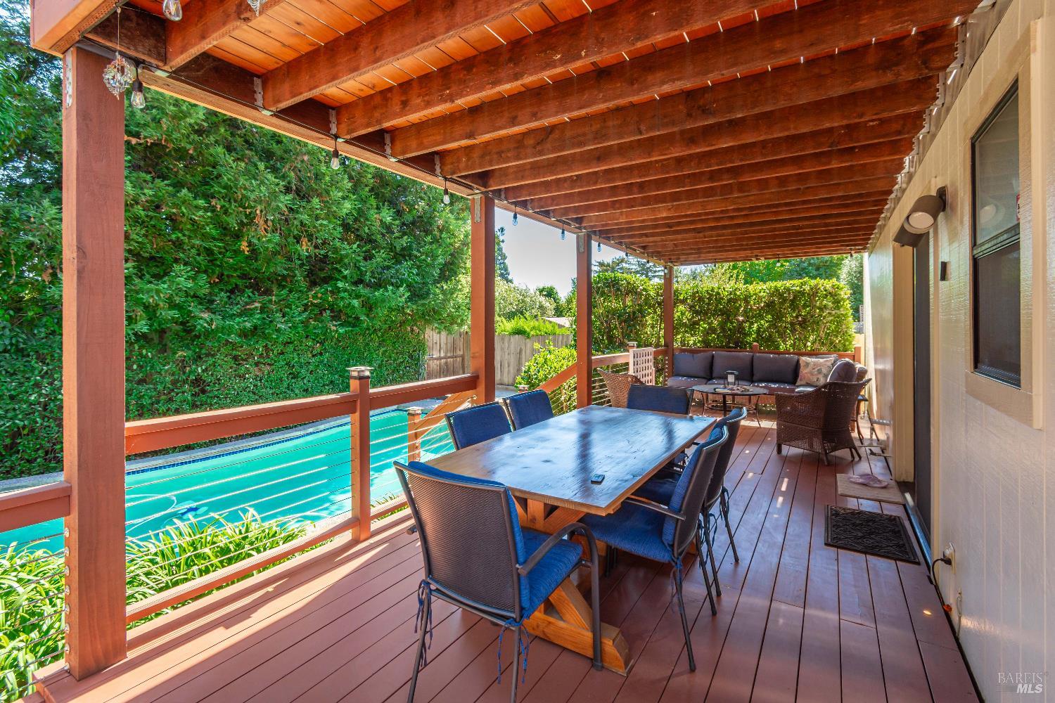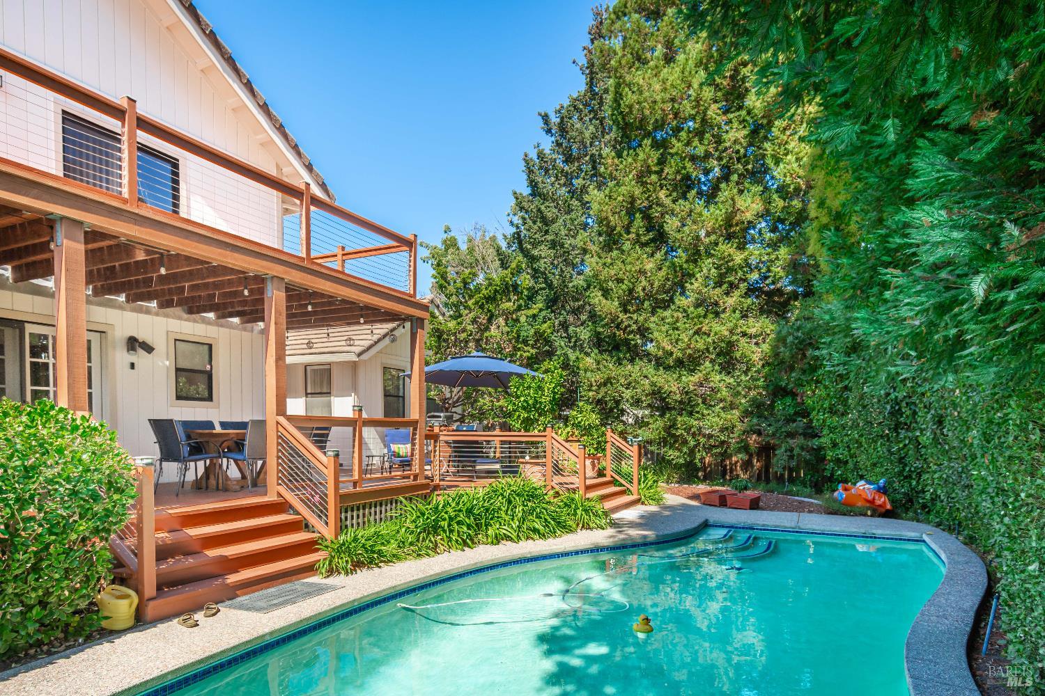 Your Private Sanctuary in Napa's Bucolic Browns Valley - Nestled in a premier location on Napa's desirable west side, this custom-built, 3/2/1, at 2,678 sqft home offers a rare blend of elegant entertaining & peaceful retreat. A formal entry welcomes you into a warm and receptive floor plan, where wood floors grace much of the living space. The separate living room, with its cozy fireplace and built-in bookshelves, provides a quiet escape. Architecturally placed windows draw your gaze to the stunning backyard, seamlessly connecting the indoors with the out. The large kitchen flows into a comfortable family room with its own fireplace, creating the perfect hub for daily life. Step outside to discover your private oasis, with a lot size of 11,643 sf. The expansive, tree-shaded yard features an in-ground pool, a bocce court, and spacious decks with a built-in BBQ area. The primary suite is a true haven, with a slider to its own deck perfect for greeting the morning sun while overlooking the yard's happenings. Enjoy the best of Napa living, with nearby hiking and cycling trails, convenient shopping at the Browns Valley market, and local favorites like HopCreek restaurant just moments away. This is an exceptional opportunity to embrace a coveted lifestyle.