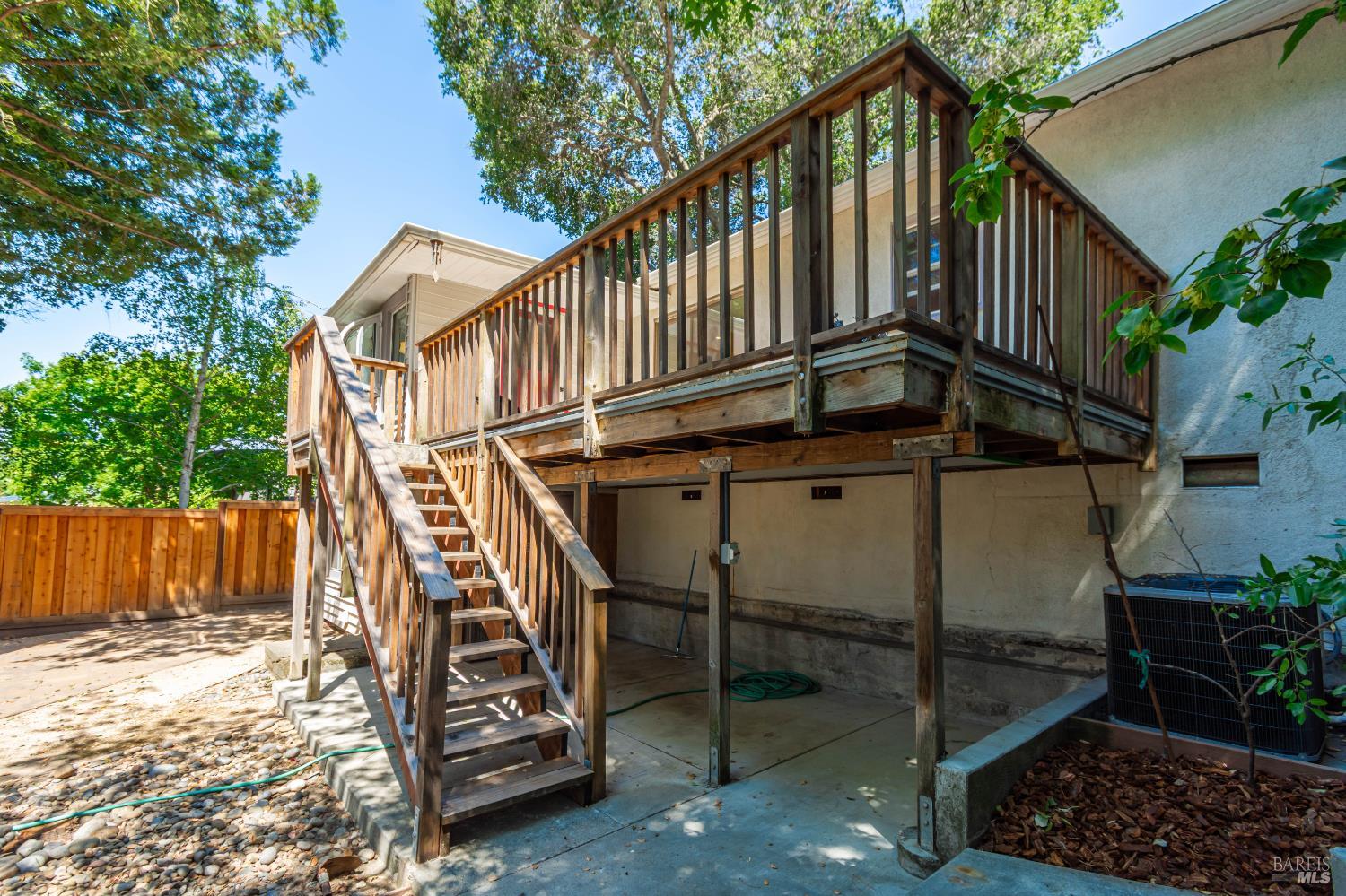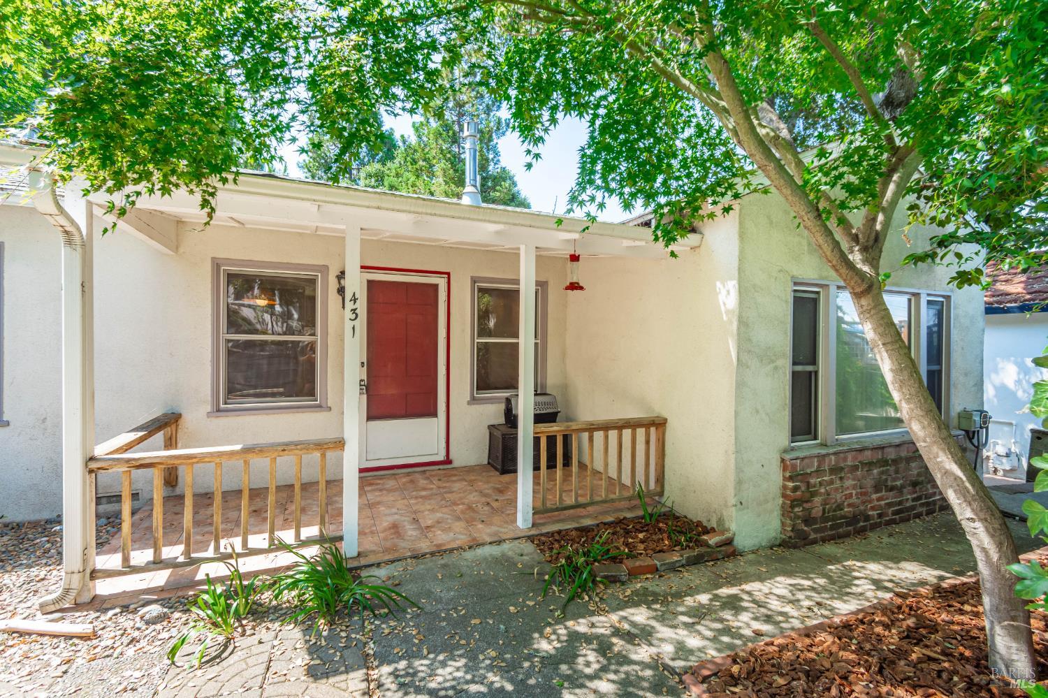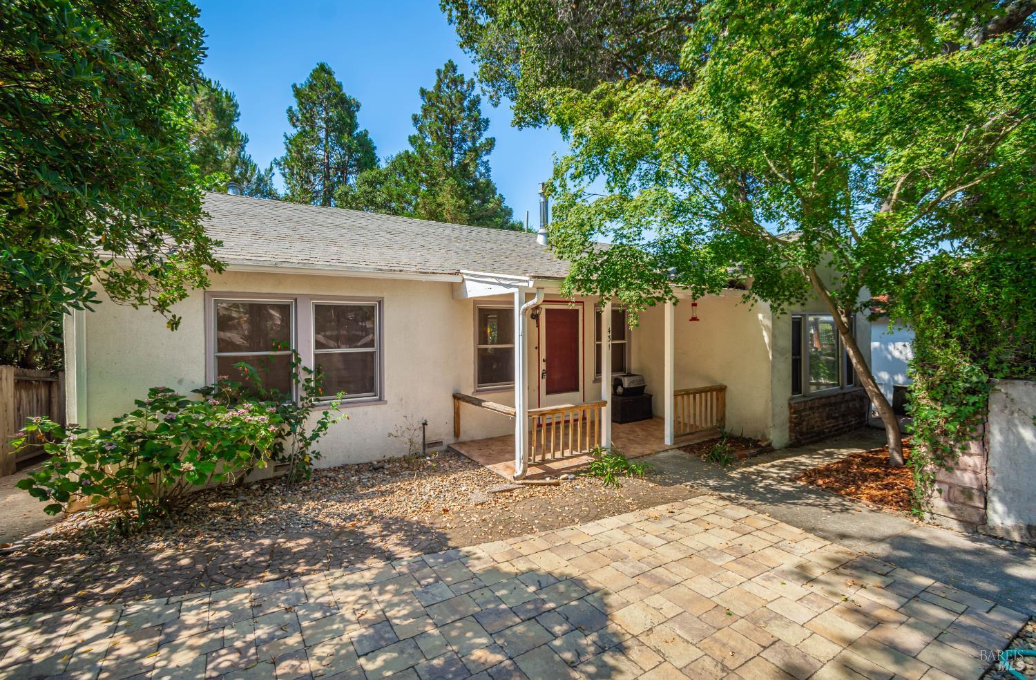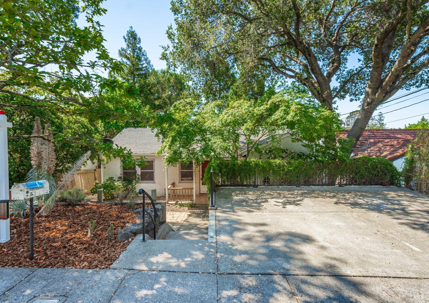 Discover this charming 3-bedroom, 2-bathroom single-level bungalow on E Berna Avenue, nestled in Napa's coveted Alta Heights, just below Maxwell Avenue. Set on a 6,694 sf lot, this 1,329 sq. ft. home is ready for a refresh & ready for a fresh start, offering cozy, intimate rooms perfect for a personalized touch. The inviting living room, warmed by wood floors & wood-burning fireplace, flows into a quaint dining area & onto the outside deck overlooking the rear yard with southern exposure & the open kitchen with an island featuring a gas range & seating, overlooking a serene rear yard. Step onto the outdoor deck or cruise down to the charming patio, coupled by mature redwood trees & a private garden area, ideal for quiet evenings or intimate gatherings. The flexible floor plan includes two cozy bedrooms & one bath in the east wing, plus a private third bedroom with a bath & exterior accessperfect for guests, a home office, or a primary suite. Hardwood floors and central heat/air add comfort, while the private front yard with a quaint sitting area enhances curb appeal. There is offe street parking for 2 car, an EV charger, & solar. Just minutes from Downtown Napa, The Oxbow, The Yard, and world-class wineries, this retreat blends small-town charm with urban convenience.