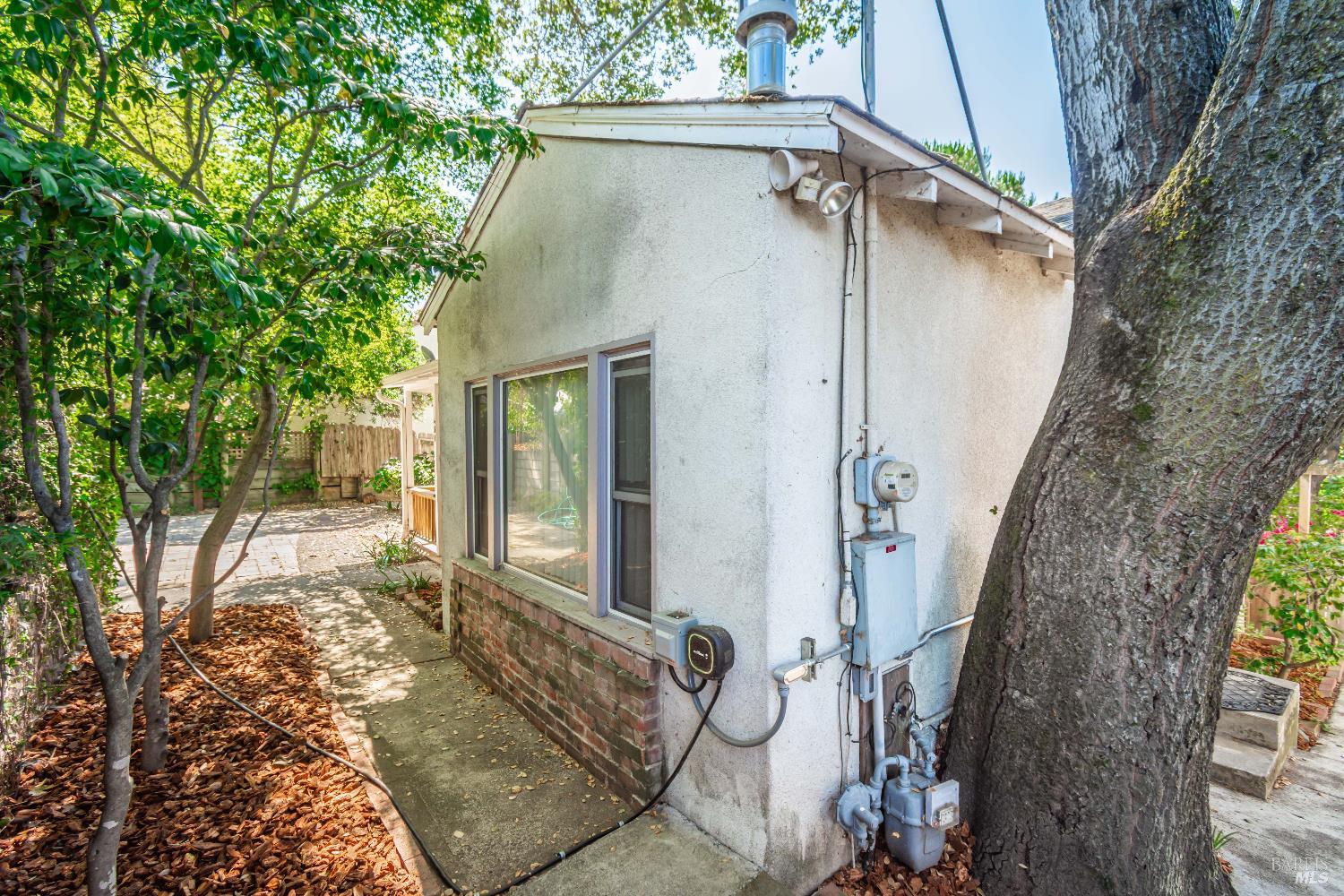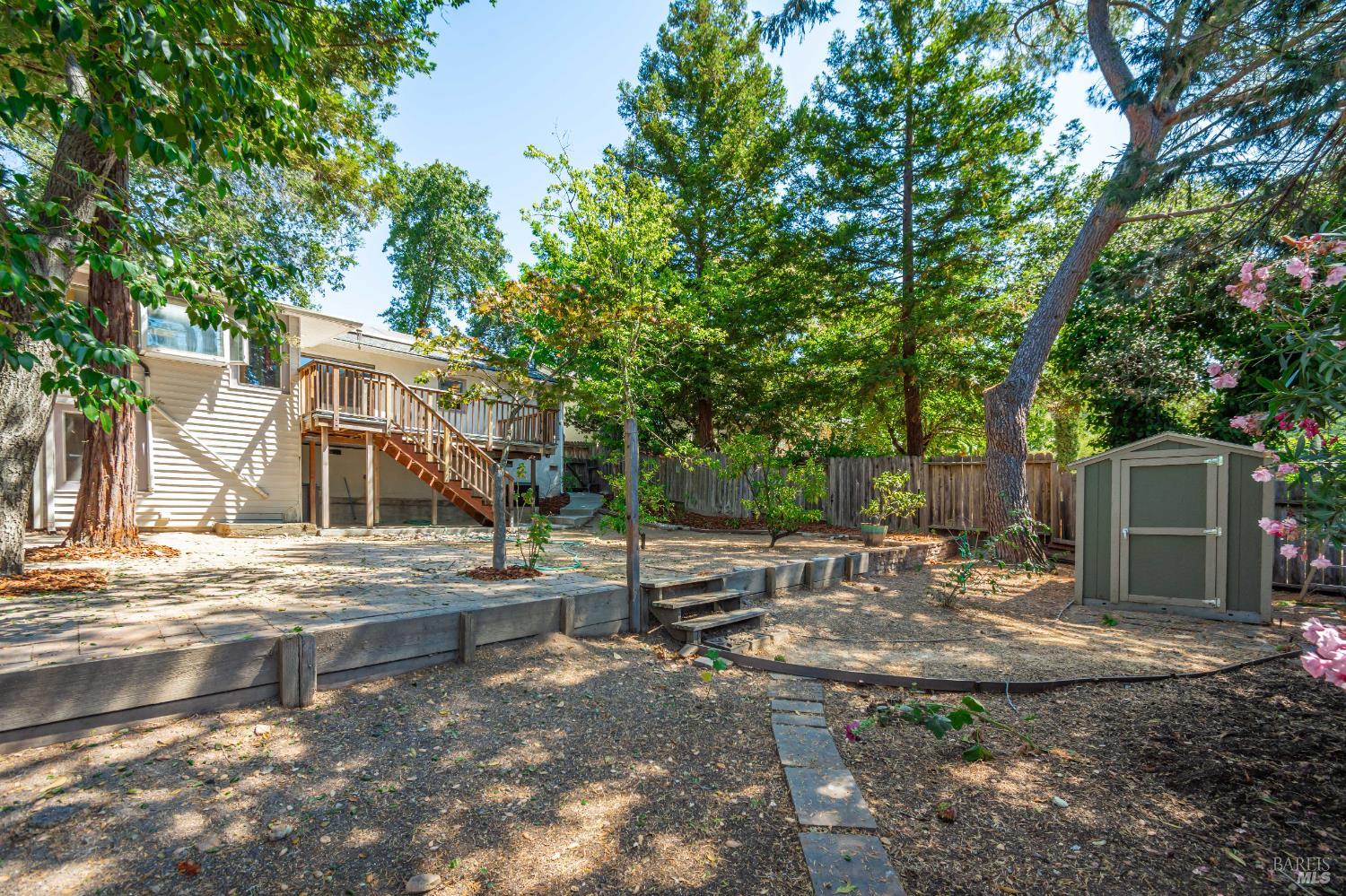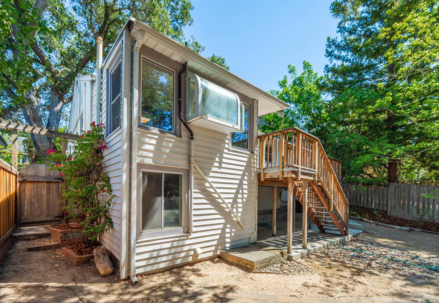 Discover this charming 3-bedroom, 2-bathroom single-level bungalow on E Berna Avenue, nestled in Napa's coveted Alta Heights, just below Maxwell Avenue. Set on a 6,694 sf lot, this 1,329 sq. ft. home is ready for a refresh & ready for a fresh start, offering cozy, intimate rooms perfect for a personalized touch. The inviting living room, warmed by wood floors & wood-burning fireplace, flows into a quaint dining area & onto the outside deck overlooking the rear yard with southern exposure & the open kitchen with an island featuring a gas range & seating, overlooking a serene rear yard. Step onto the outdoor deck or cruise down to the charming patio, coupled by mature redwood trees & a private garden area, ideal for quiet evenings or intimate gatherings. The flexible floor plan includes two cozy bedrooms & one bath in the east wing, plus a private third bedroom with a bath & exterior accessperfect for guests, a home office, or a primary suite. Hardwood floors and central heat/air add comfort, while the private front yard with a quaint sitting area enhances curb appeal. There is offe street parking for 2 car, an EV charger, & solar. Just minutes from Downtown Napa, The Oxbow, The Yard, and world-class wineries, this retreat blends small-town charm with urban convenience.