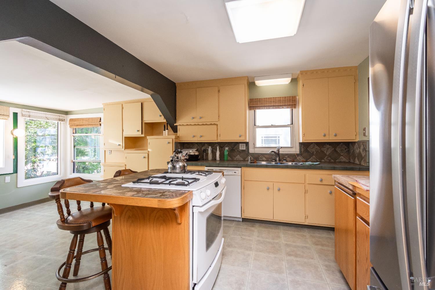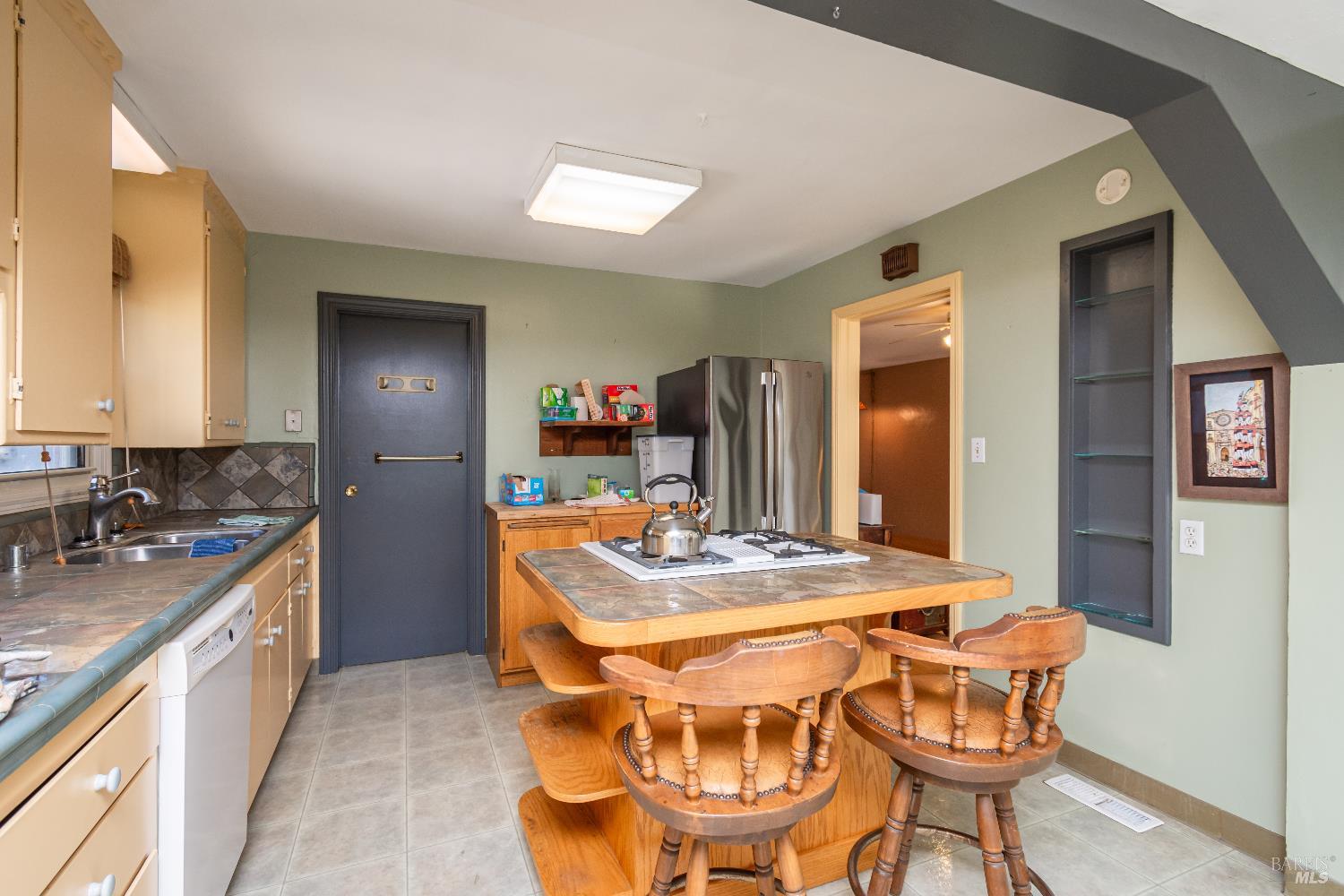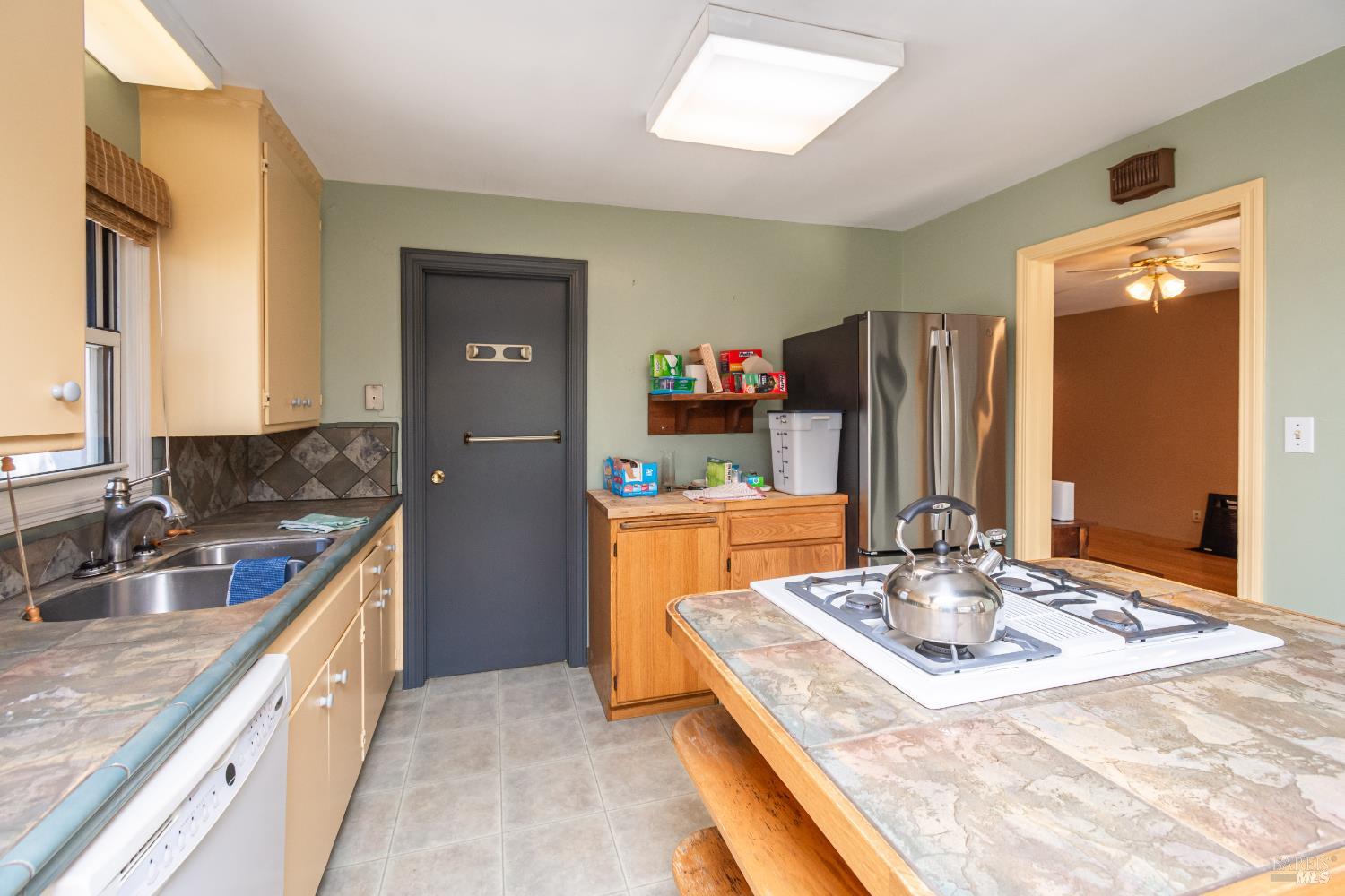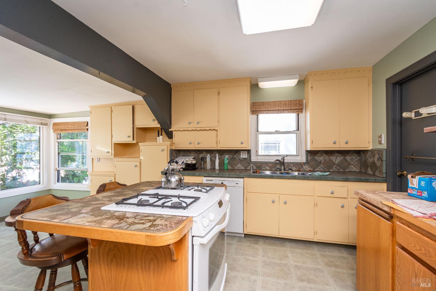 Discover this charming 3-bedroom, 2-bathroom single-level bungalow on E Berna Avenue, nestled in Napa's coveted Alta Heights, just below Maxwell Avenue. Set on a 6,694 sf lot, this 1,329 sq. ft. home is ready for a refresh & ready for a fresh start, offering cozy, intimate rooms perfect for a personalized touch. The inviting living room, warmed by wood floors & wood-burning fireplace, flows into a quaint dining area & onto the outside deck overlooking the rear yard with southern exposure & the open kitchen with an island featuring a gas range & seating, overlooking a serene rear yard. Step onto the outdoor deck or cruise down to the charming patio, coupled by mature redwood trees & a private garden area, ideal for quiet evenings or intimate gatherings. The flexible floor plan includes two cozy bedrooms & one bath in the east wing, plus a private third bedroom with a bath & exterior accessperfect for guests, a home office, or a primary suite. Hardwood floors and central heat/air add comfort, while the private front yard with a quaint sitting area enhances curb appeal. There is offe street parking for 2 car, an EV charger, & solar. Just minutes from Downtown Napa, The Oxbow, The Yard, and world-class wineries, this retreat blends small-town charm with urban convenience.
