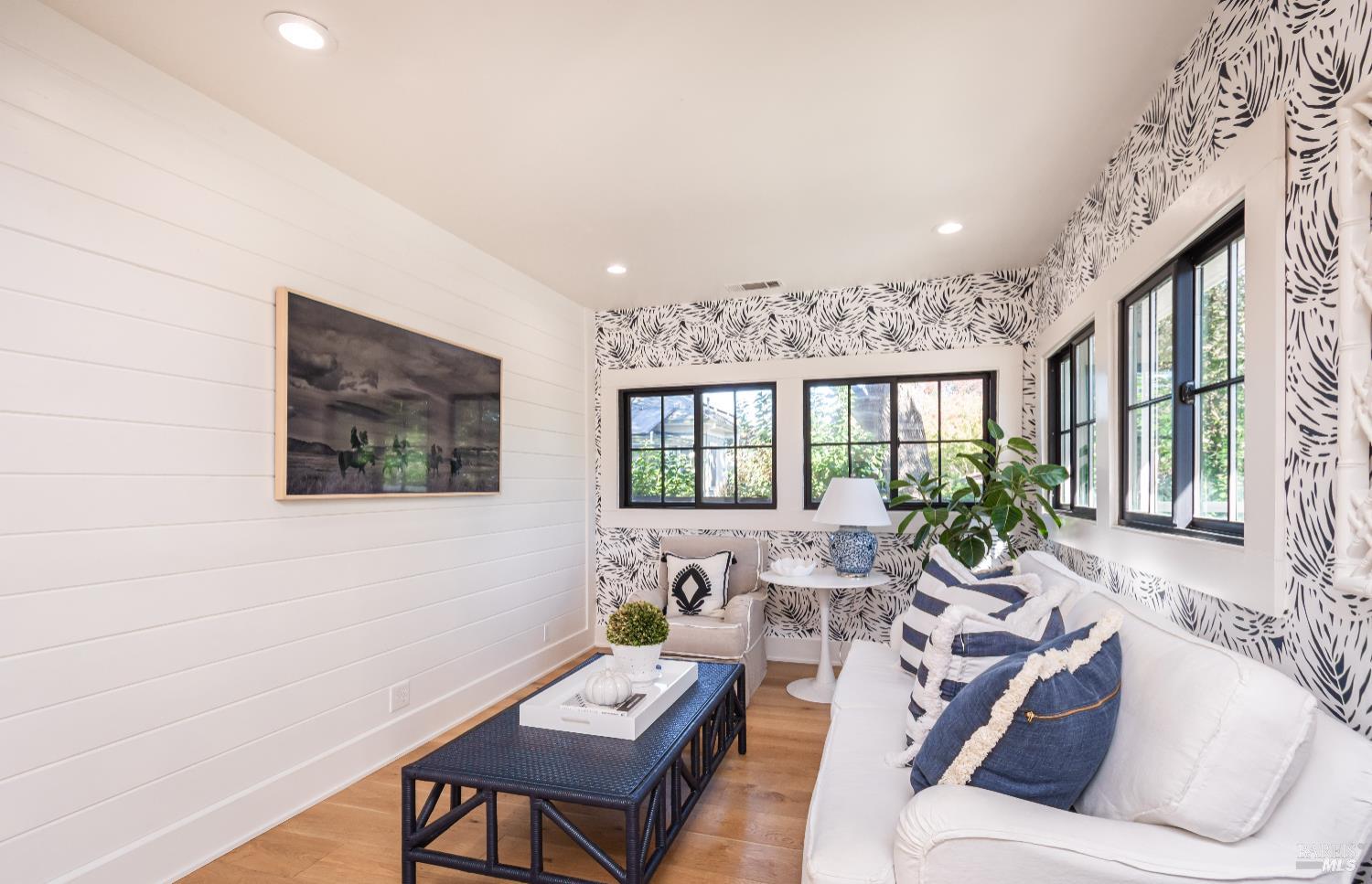 Experience the next level of downtown Napa living, Where Classic Architecture and Contemporary Living Converge - 576 Patchett Street where timeless Colonial Revival architecture meets inspired contemporary living in the heart of Napa. This thoughtfully curated single-level 2-bedroom, 1-bath residence offers a seamless blend of classic charm and modern design. An inviting elevated front porch with west-facing swings sets the tone for relaxed evenings. Inside, the chef's kitchen dazzles with a center island, gas range, stainless steel appliances, and walk-in pantryflowing effortlessly into a sun-drenched great room with views of the lush backyard. A cleverly integrated office and wide-plank wood floors enhance the home's functionality and style. Step outside to a beautifully landscaped patio with a gathering table and bocce courtperfect for entertaining or peaceful retreat. A cozy fireplace with hearth anchors the living space, radiating warmth and connection. With a workshop, generous basement, and a coveted location near Fuller Park and Downtown Napa's vibrant scene, this home is a rare blend of elegance, comfort, and lifestyle.