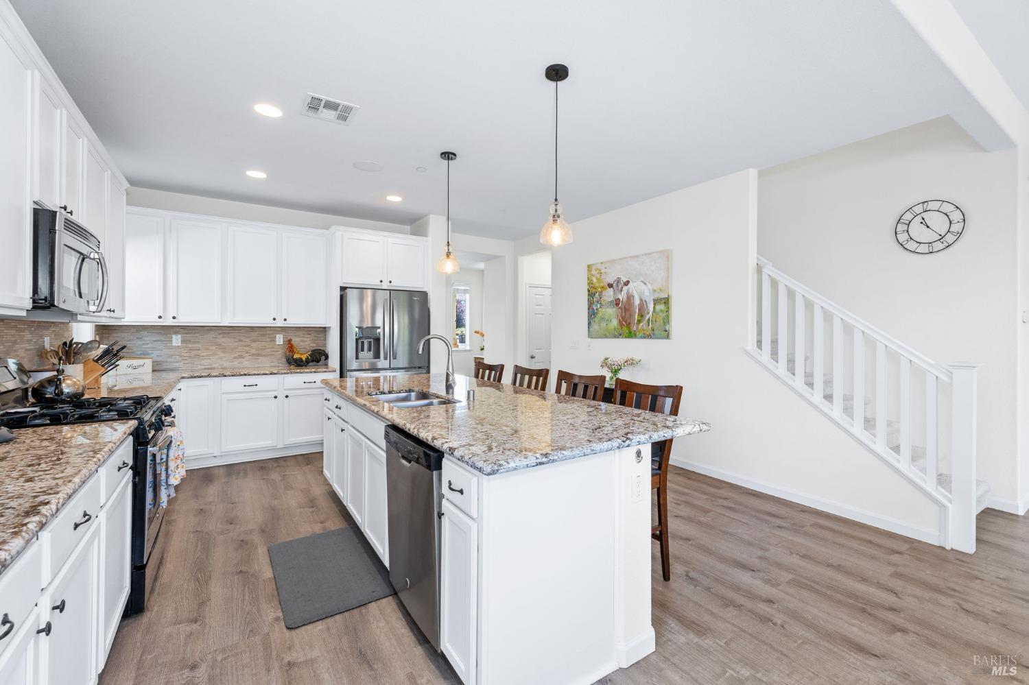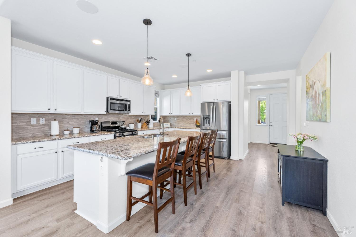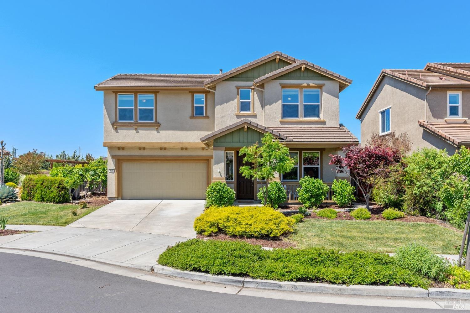 This gorgeous home combines elegance, comfort, and convenience with a spacious open layout ideal for entertaining and everyday living. Located close to downtown you will enjoy easy access to shops, restaurants, and cultural attractions, while the tranquil yard with gardening beds and fruit trees amidst mature landscaping offers a peaceful retreat in a quiet neighborhood. This home features a grand kitchen with island seating, a master suite with walk-in closet and soaking tub, an upstairs laundry room, as well as additional well-appointed bedrooms and bathrooms, including a bedroom and full bath on the first floor. The beautifully landscaped yard includes a private front porch and backyard patio for outdoor dining and relaxation. Enjoy the scenic beauty of Napa Valley, proximity to schools, parks, and the vibrant local scene, all while having your own serene oasis to return to.